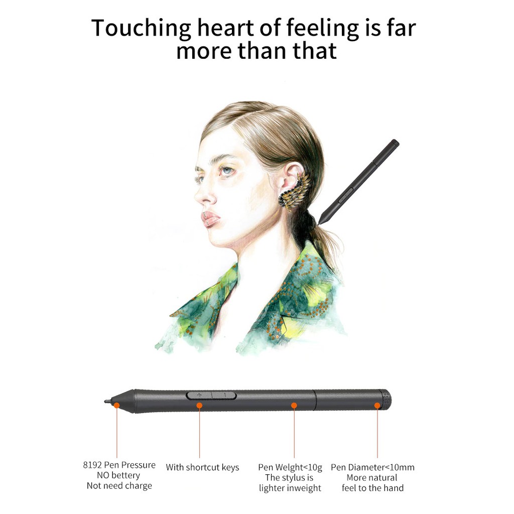 - Mức lực nhấn cảm ứng lên đến 8192 mức, cho phép bạn chỉnh sửa, điều hướng và sáng tạo với nguyên bộ cọ và bút, cảm giác như dùng một cây bút thực vậy.