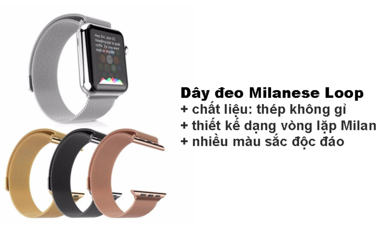 * Nếu việc sử dụng dây đeo cao su của Apple Watch khiến bạn không thoải mái, thì giải pháp cho bạn chính là sử dụng Milanese Loop.